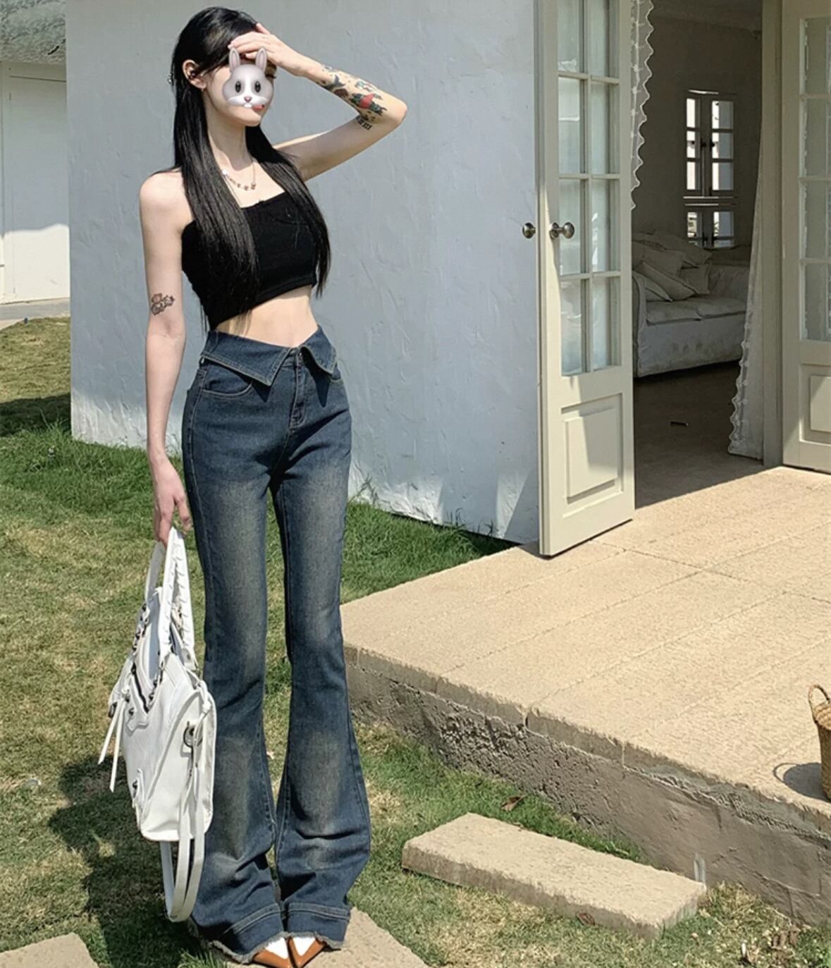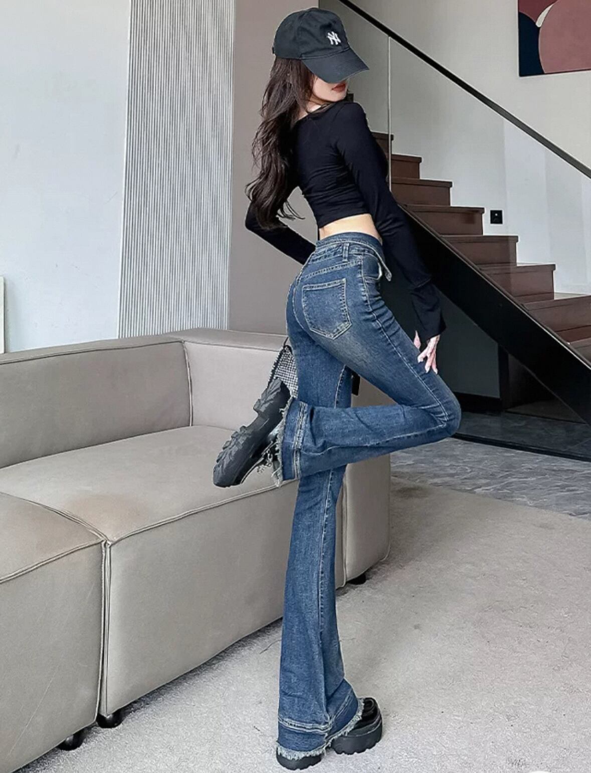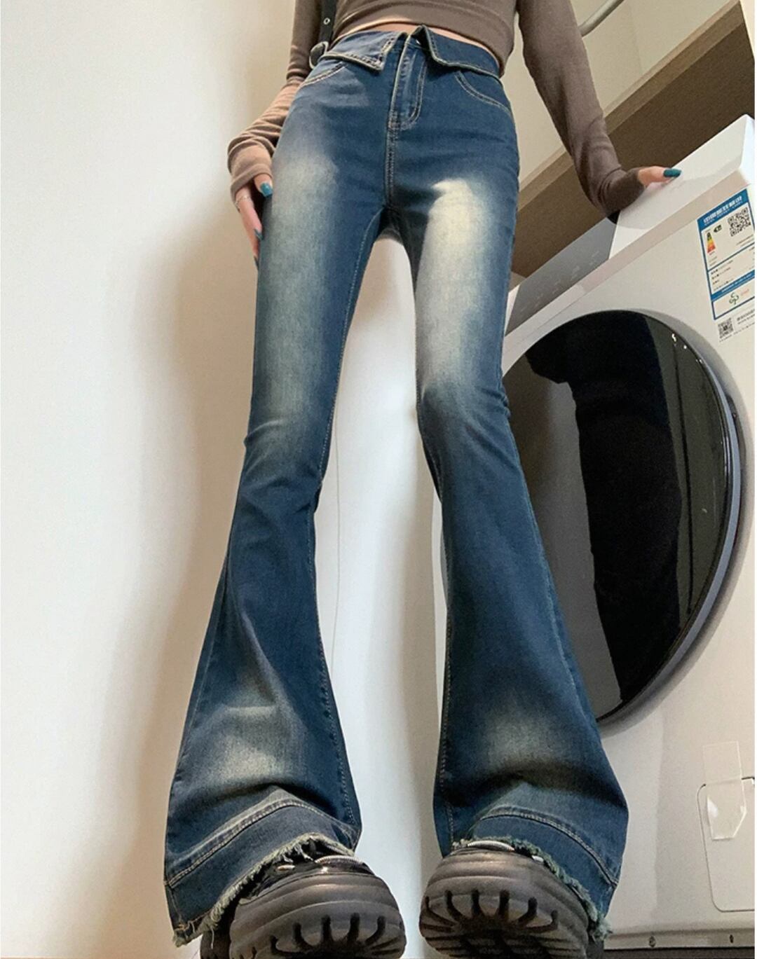 ワンホン 韓国 フレアデニム ジーンズ カジュアル