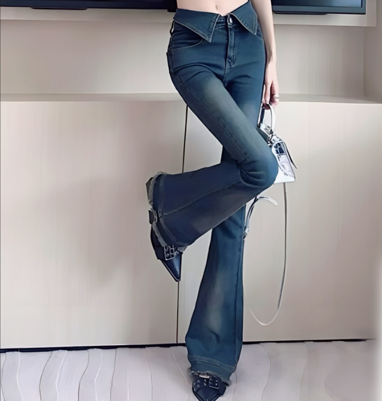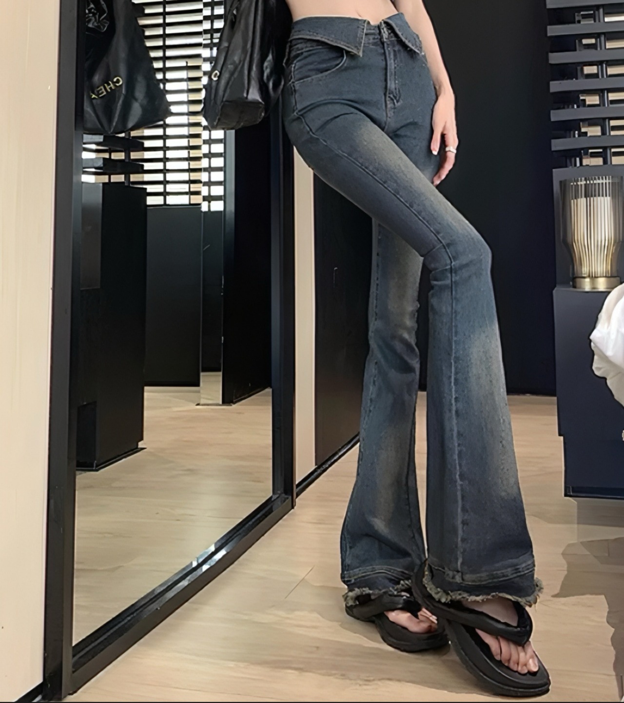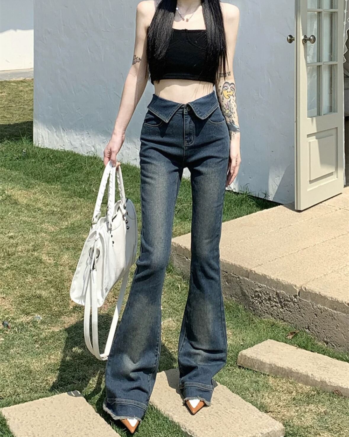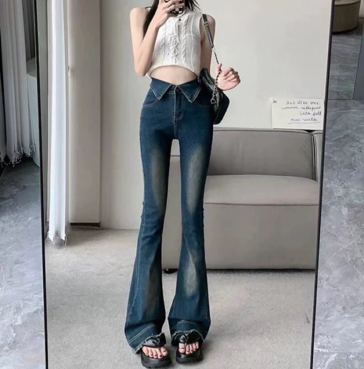 ワンホン 韓国 フレアデニム ジーンズ カジュアル