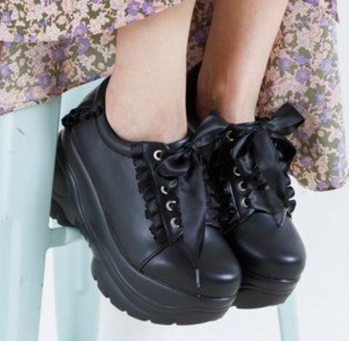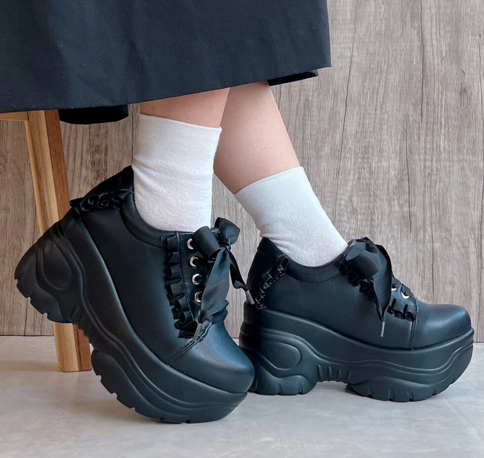 サテンリボンとフリルが可愛い厚底スニーカー♡