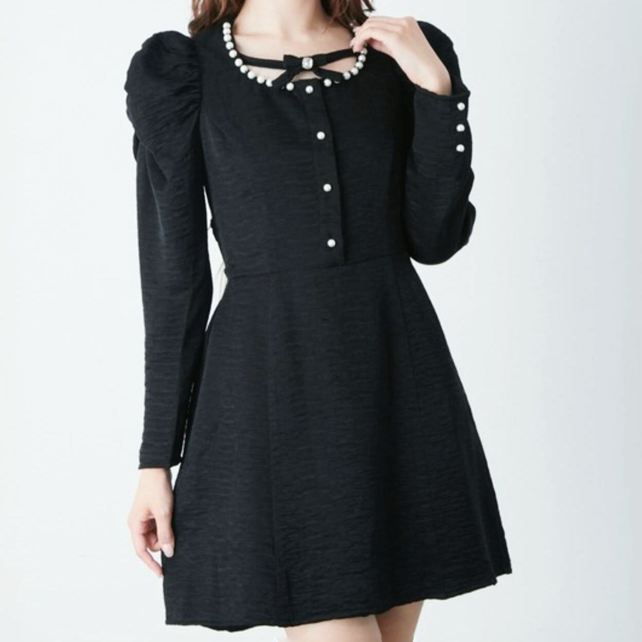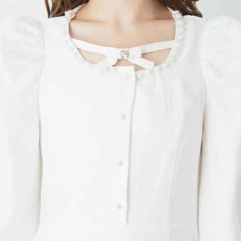 ショート ミニ丈 ビジュー リボン 台形 長袖