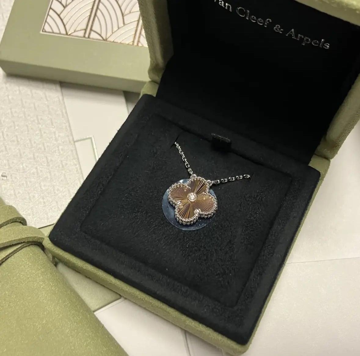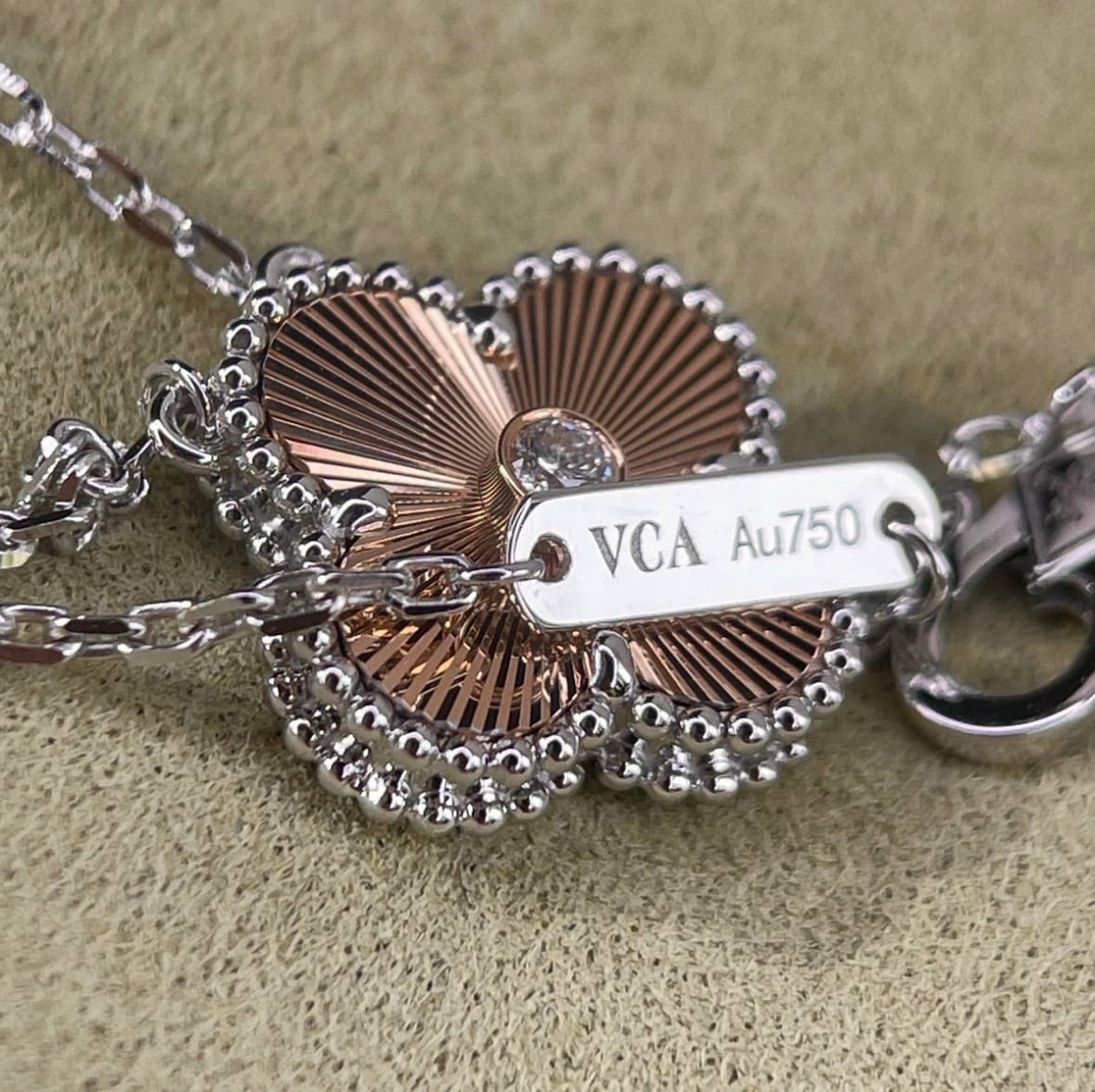 Van Cleef & Arpels 2024 ホリデー ギヨシェ ヴィンテージアルハンブラ ペンダント K18WG × K18PG センターダイヤモンド 付属品完備