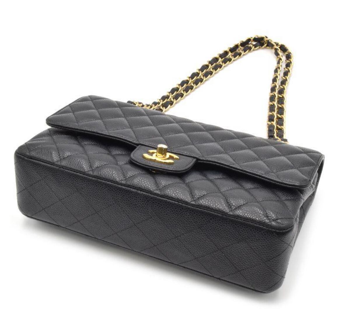 CHANEL シャネル ダブルフラップ マトラッセ 25 キャビアスキン A01112 ブラック チェーンショルダー バッグ ゴールド金具 黒